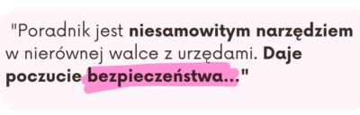 Dlatego zdecydowałam się uchylić rąbka tajemnicy. Chcę dać Ci dostęp do wiedzy, której urzędnicy nie chcą, abyś posiadał/a. Wiedzy, która wyrówna szanse w tej nierównej walce.